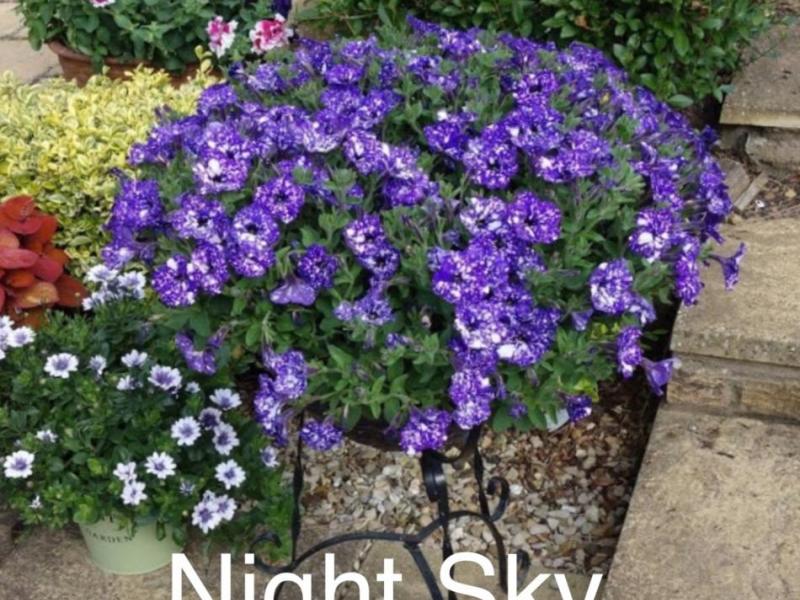 Petunia (novelty varieties) These are some novelty varieties that we grow. Black Velvet (semi trailing) - £2.75 Night Sky (semi trailing) - £2.50 and £3.60 Queen of Hearts - (semi trailing) £2.50 Pink Hearts - (semi trailing) £2.50 Prices Prices from £2.50